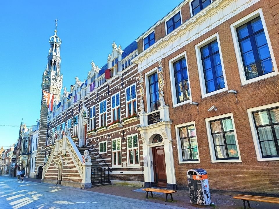 The best starting point if you want to eat or drink something first is the Waagplein, Mient, or Vismarkt. These locations have a variety of restaurants and cafés, and they are on the route.