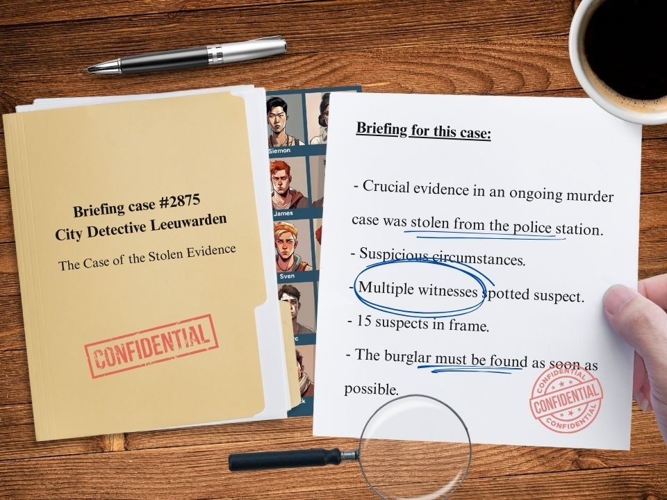 Last Saturday evening, Leeuwarden was rocked by a daring burglary. Crucial evidence in an ongoing murder case was stolen from the police storage room. Chief Inspector Camila of the City Detective Force needs your help to find the criminal as soon as possible.
